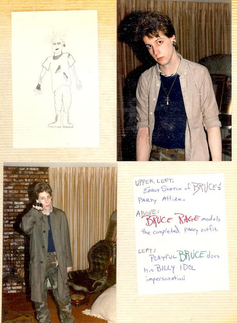 In a class in college, we had a "costume party" of sorts. We had to go as fictional characters we made up that were the opposite of ourselves. I went as Bruce Rage, a legendary punk rocker. I don't even recall why I created the character...but it was fun.