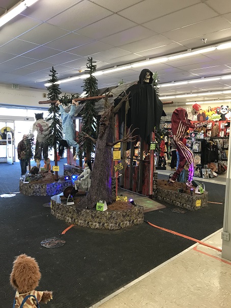 Once we left the restaurant, I wanted to head back to the Halloween store. It dawned on me that my wig and mustache set for my Captain Hook Halloween costume would probably come withOUT spirit gum and there'd be no way to attach it. I ended up being right. Glad we stopped and got some.